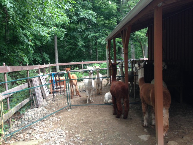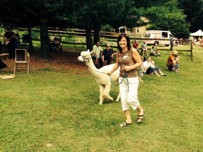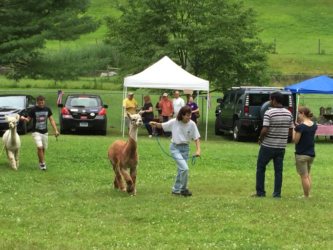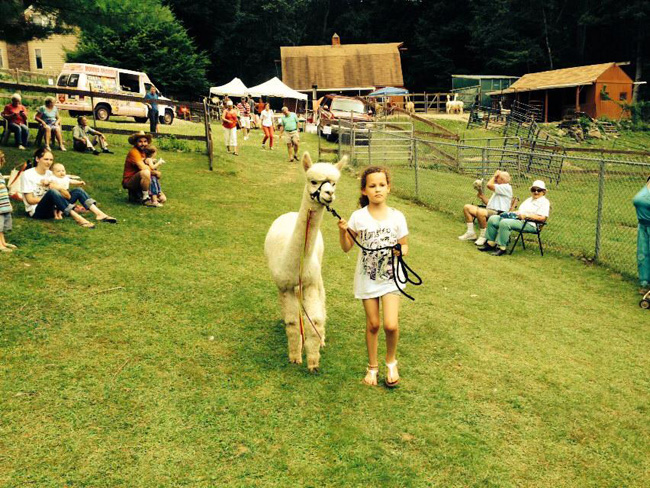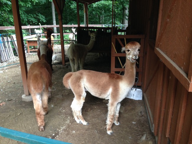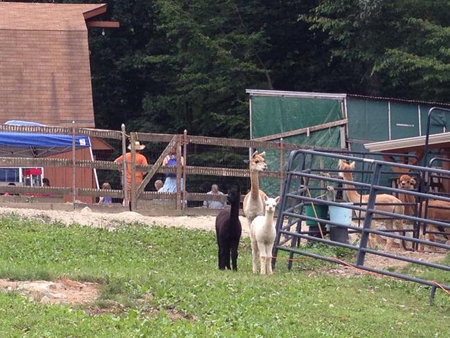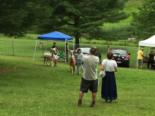 Kodiak the alpaca greeting folks