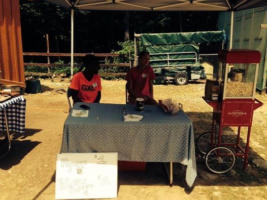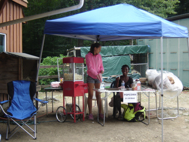 Meagan and Thara selling popcorn