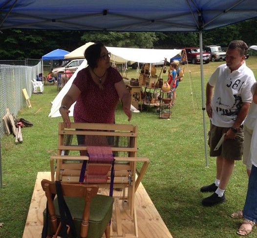Peggy Churchil demonstrating weaving