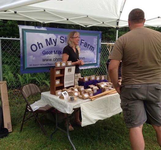 Laurie from Oh My Stars Farm selling handmade goat milk soap
