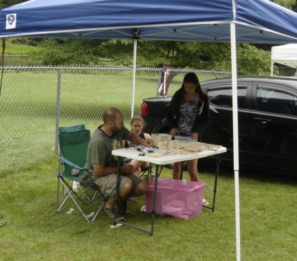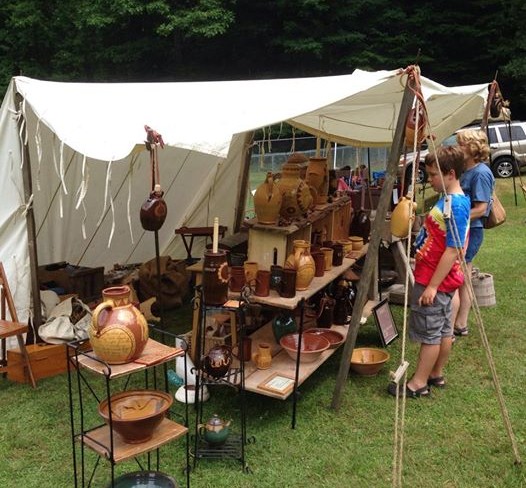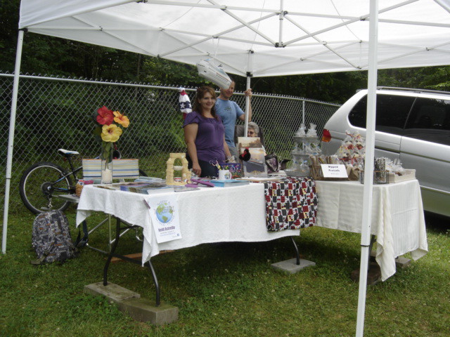 Debbi and Robin selling handmade wood pottery and unique windchimes